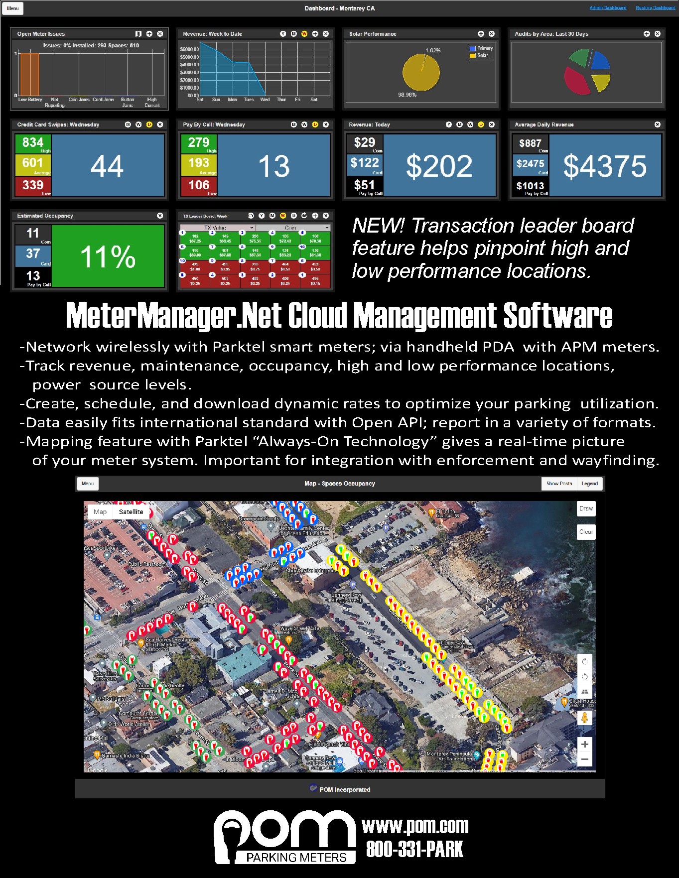Populate your own satellite map of meters based on GPS location for each meter, then see meter status at any point of the day; backend data available for integration with mobile apps and enforcement.